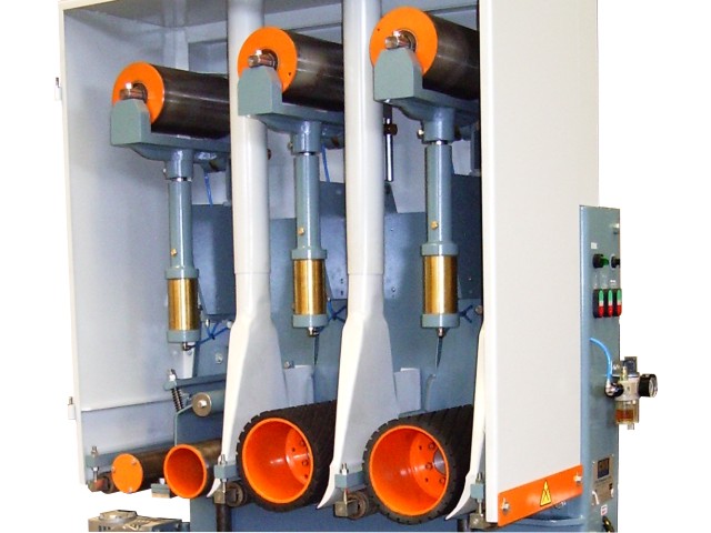 Principais Características • três grupos lixadores • inversor de frequência no tapete transportador • esticamento pneumático das lixas • largura útil de lixamento de 230 mm • altura útil de lixamento de 165 mm